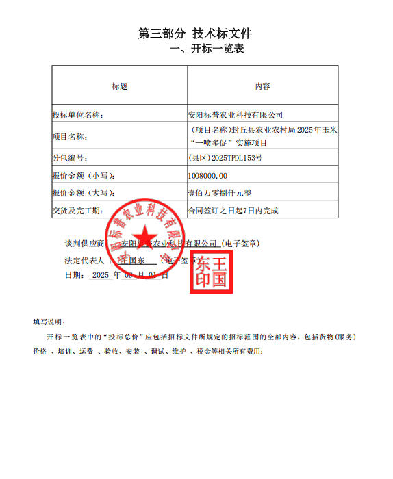 封丘县农业农村局2025年玉米“一喷多促”实施项目-结果公告